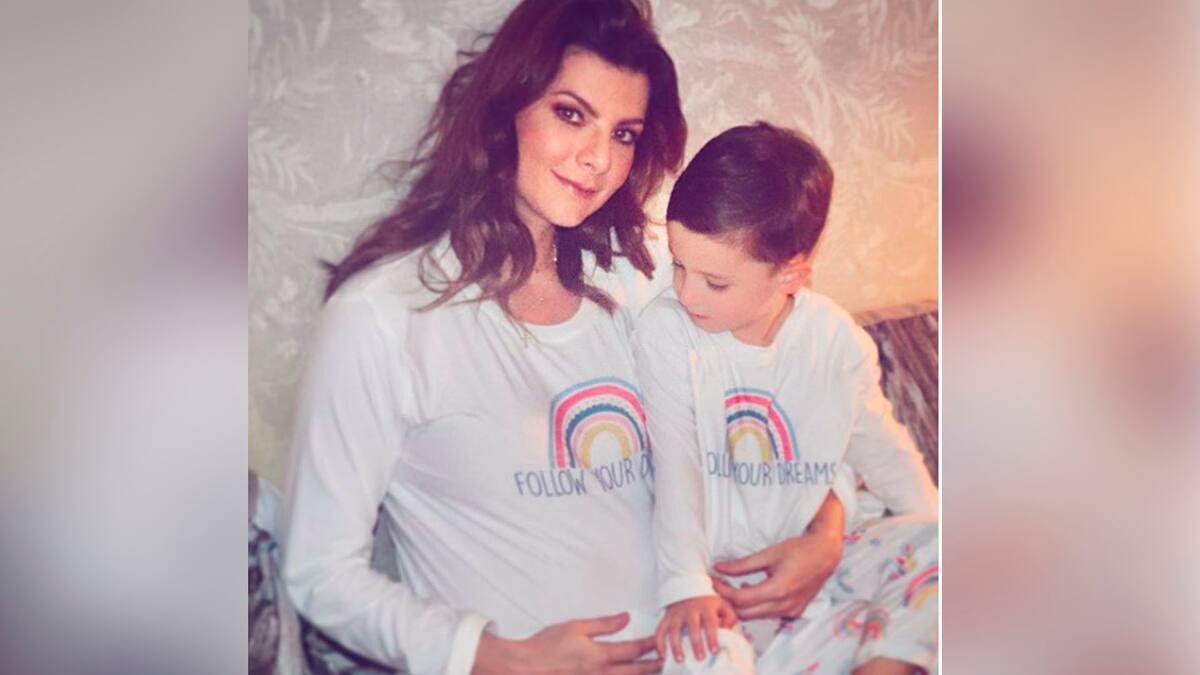 La presentadora espera su segundo hijo a los 41años, al lado de su esposo Lincoln Palomeque y su primer hijo, Matías.