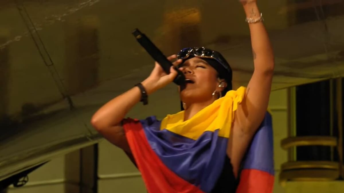 Al subirse al escenario, Karol G iba vestida de negro y llevaba la bandera de Colombia, '¡Ey familia, Karol G desde Colombia, los latinos en Tomorrowland ariba!', fue una de las frases que dijo la paisa un gigantesco público multinaciones que enloqueció con su presentación.